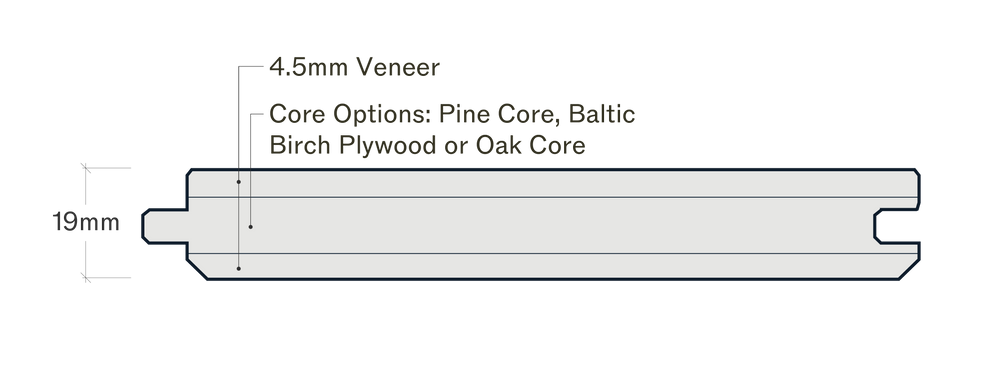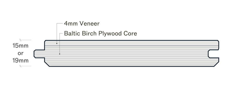 3 Ply balanced construction with 4.5mm wood layer on the top and bottom with 3 core options: pine, baltic birch plywood or oak.