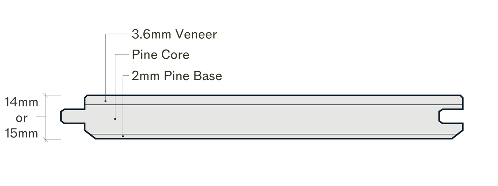 3 Ply construction with 3.6mm wood layer on the top with a pine core and 2mm pine base.